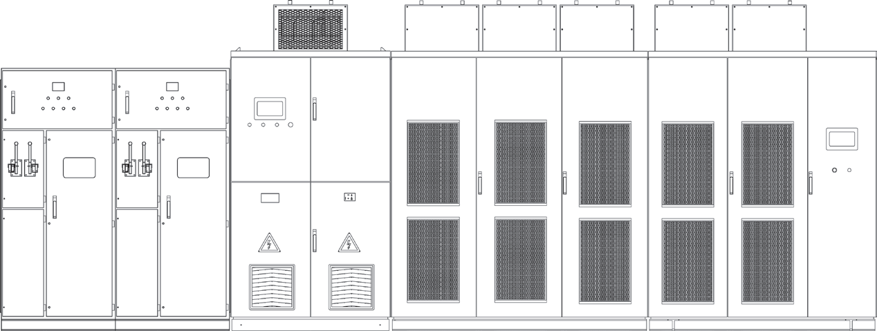 Так же, в приложениях к документу приведены альбомы габаритных чертежей оборудования (преобразователей частоты, секций коммутации и шкафов реактора), однолинейных электрических схем (прямой пуск, схемы с байпасом, автоматический синхронный каскадный пуск), принципиальных схем и схем подключения для типовых решений.
